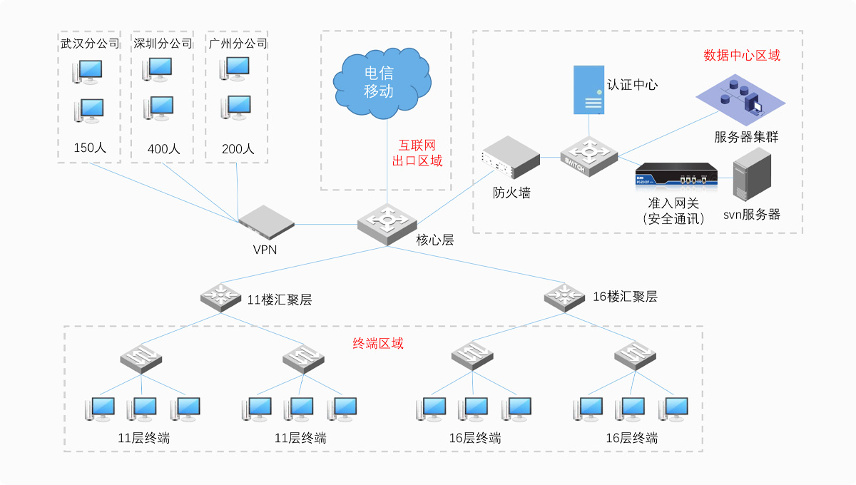 2. 對(duì)企業(yè)內(nèi)網(wǎng)終端,互聯(lián)網(wǎng)接入和VPN接入的終端進(jìn)行準(zhǔn)入管理。