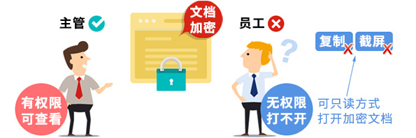 IP-guard可為不同的人分配不同的文檔權(quán)限,每個(gè)人都只能打開(kāi)相應(yīng)權(quán)限的文檔。
